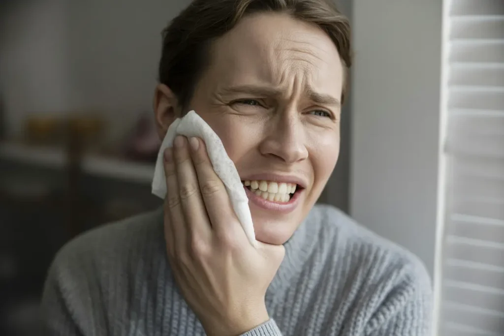 Rinse with warm water, floss gently to clear debris, and apply a cold compress outside your cheek. Over-the-counter pain relief can help until your visit—but avoid putting aspirin directly on gums.