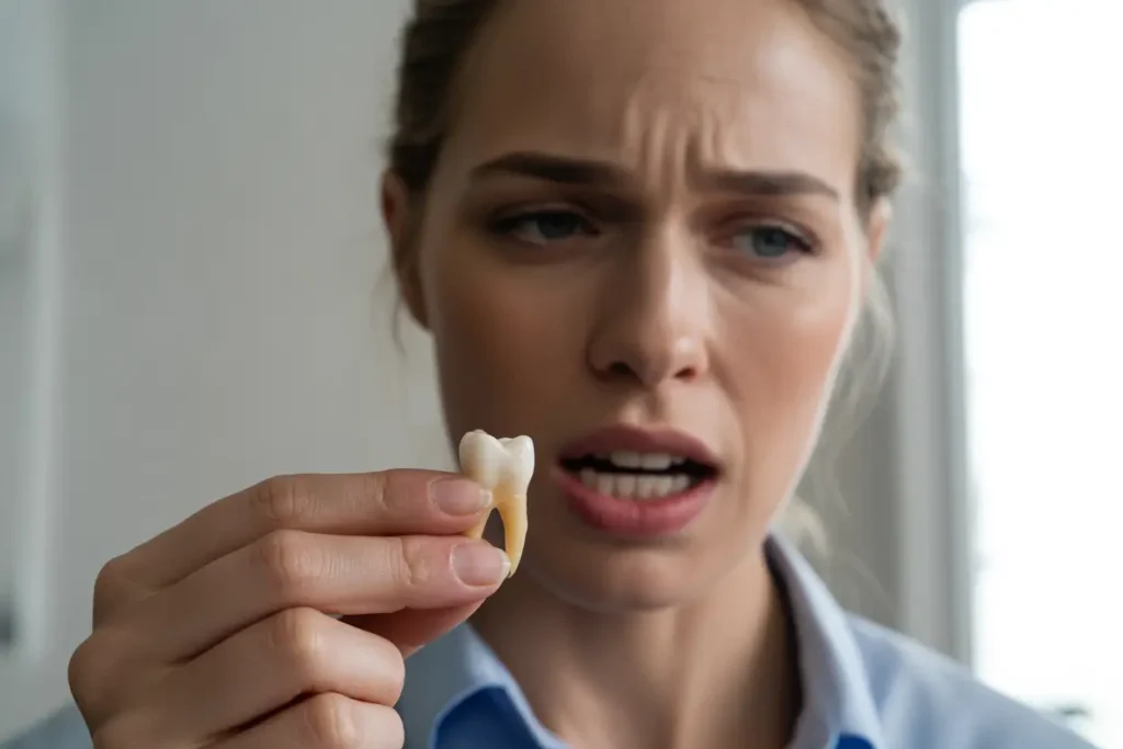 If a filling or crown comes loose, avoid chewing on that side. Save the piece if you can and reach out to your dentist promptly for a quick repair.